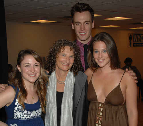 The concert's founders, from left to right: Dana Steingold (Godspell, Spelling Bee), NYCLU Executive Director Donna Lieberman, Erich Bergen (Jersey Boys) and Liana Stampur.