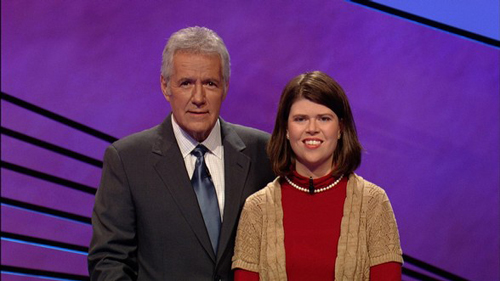 As it happened, the ACLU had more than a category connection to Friday's show. One of the contestants, Amy Drittler (pictured with Alex Trebek, above), was the former program coordinator at the ACLU of Tennessee. Amy didn't win, but the fact that she even made it on was something of an achievement for a program notorious for a brutal selection process that includes multiple quizzes and an audition.