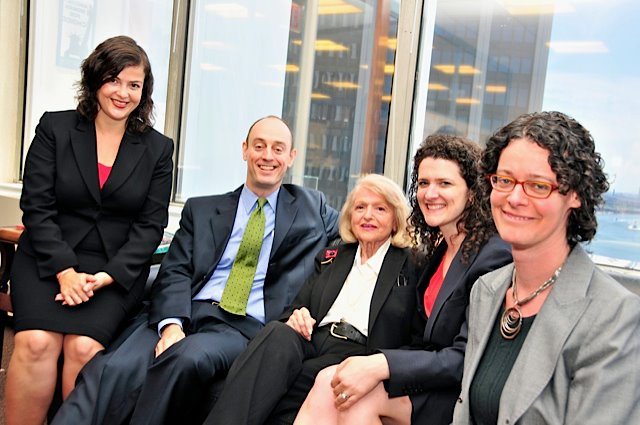 Yesterday, Edie Windsor visited the ACLU and NYCLU offices to address the media after her amazing victory in her challenge against the discriminatory Defense of Marriage Act. Edie filed a lawsuit with the help of the ACLU and the law firm Paul, Weiss, Rifkind, Wharton & Garrison LLP against the government after the death of her spouse and partner of 44 years, Thea Spyer.