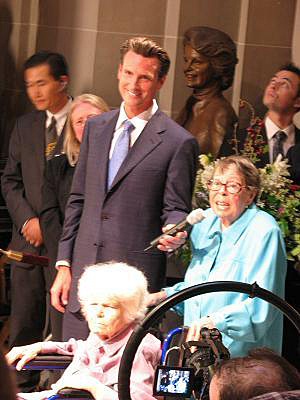 San Francisco Mayor Gavin Newsom (left) with Del Martin and Phyllis Lyon, the first same-sex couple to be legally married at City Hall on June 16, 2008. (Photo by Brad Luna, Human Rights Campaign).