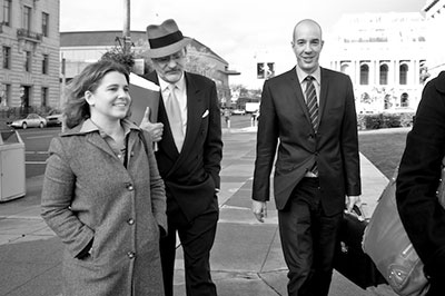 LGBT & AIDS Project Staff Attorney Elizabeth Gill (left), LGBT & AIDS Project Director Matt Coles (center) and ACLU Executive Director Anthony D. Romero head to watch the oral arguments in Strauss.