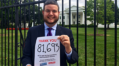 The ACLU and our hundreds of thousands of members and activists across the country helped to make this day possible. Together with our partners at All Out, 81,693 people signed a petition urging to President Obama to sign this executive order without an exemption for religiously affiliated contractors.