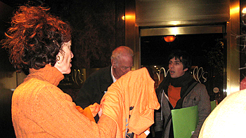 Harry Smith pictures poses for pictures with me (left), Barbara Harris of Code PINK and Raging Grannys (center) and NYCLU Organizer Erica Braudy.
