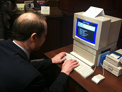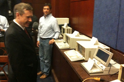 And here is Sen. Mark Kirk (R-Ill.) checking out all the 1986 computers.