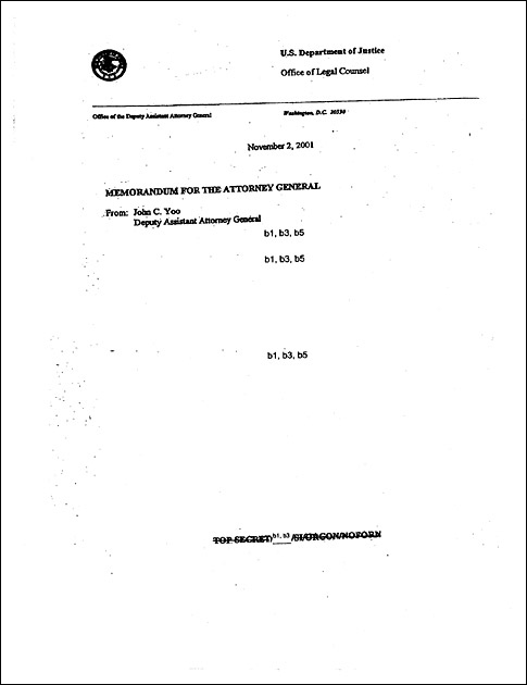 For the most part, the government — first the Bush administration and now the Obama administration — has stonewalled our request. Last week, almost five years after we filed our request under the Freedom of Information Act, we managed to obtain two Bush administration legal memos about government surveillance, but the memos are heavily redacted — almost comically so.