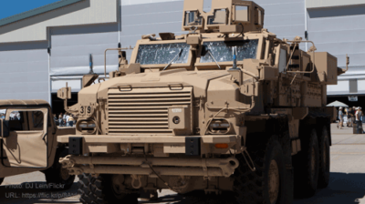 Spotted on Campus: Up-Armored Mine-Resistant Monster Trucks