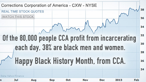 What's most unsettling about Mr. Hininger's missive is that it's so completely unconscious of the reality that his company supports and depends upon a system of mass incarceration that has devastated the black community, and that has done more than anything since Jim Crow to perpetuate a racial caste system in America. CCA might celebrate Black History Month, but no part of Black History Month celebrates CCA.