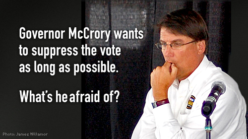 The ACLU and the Southern Coalition for Social Justice are challenging this law, which cuts early voting by a week, gets rid of same-day voter registration, and imposes a new voter ID requirement. Voters are also no longer allowed to cast provisional ballots for upper-ticket races like the U.S. Senate if they show up at the wrong polling place or get in the wrong precinct line to vote. Proponents of the law (including Governor Pat McCrory) say that the changes are necessary to improve the integrity of elections. Aside from trying to address the almost-nonexistent rate of voter fraud in North Carolina, there's absolutely no evidence that cutting a week of early voting gets at election integrity.