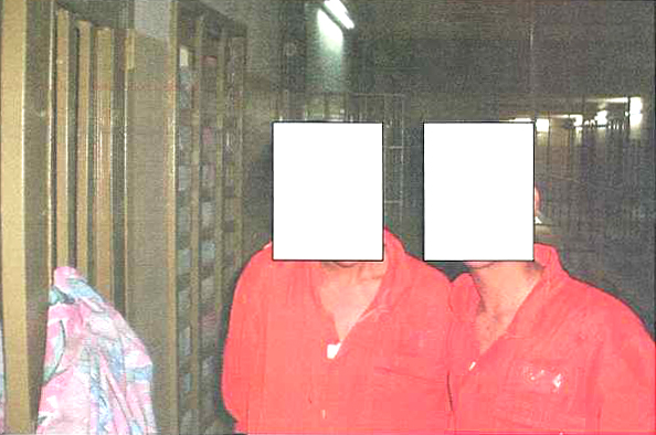 The authentication released today identifies 73 photographs and three videotapes depicting detainee abuse, provided by Sergeant Joseph Darby to the Army's Criminal Investigation Command. Seventy-three of the images are available from the online magazine Salon.com. One additional image from the Darby trove, with individually identifying details deleted, was also released. It depicts two men in orange jumpsuits standing side by side.