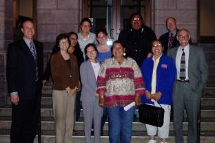 Representatives from the Winner/Ideal Native American community with their legal team on the steps of the federal court house in Sioux Falls on the night the settlement was reached.